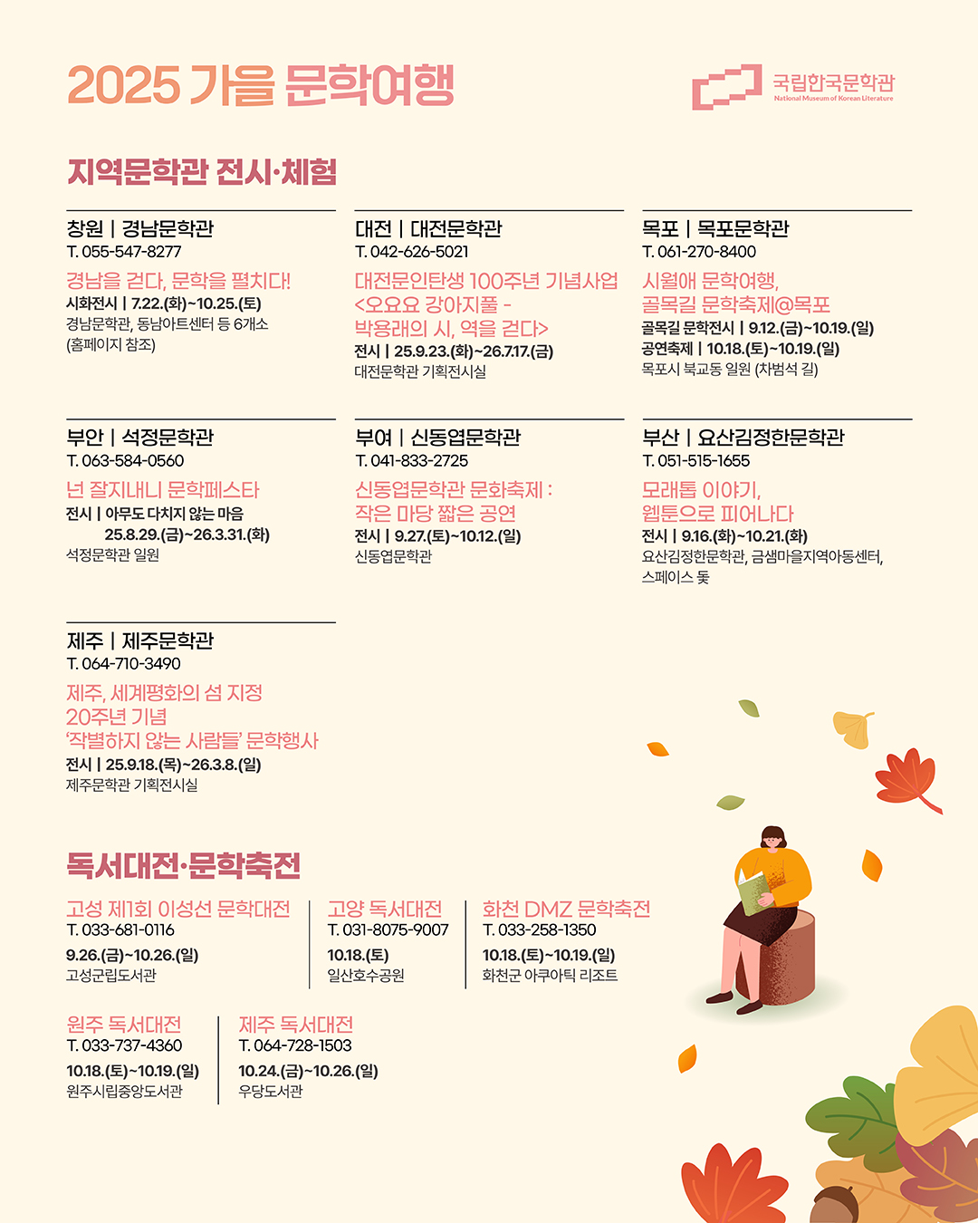 * 추석 연휴 기간 문학관 및 기관 운영 시간은 다를 수 있습니다.