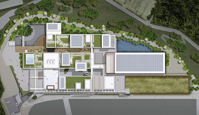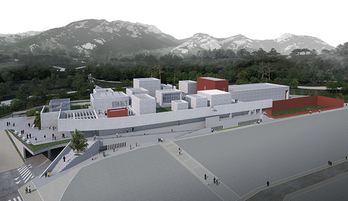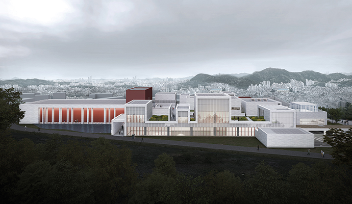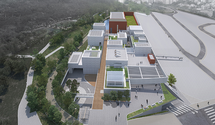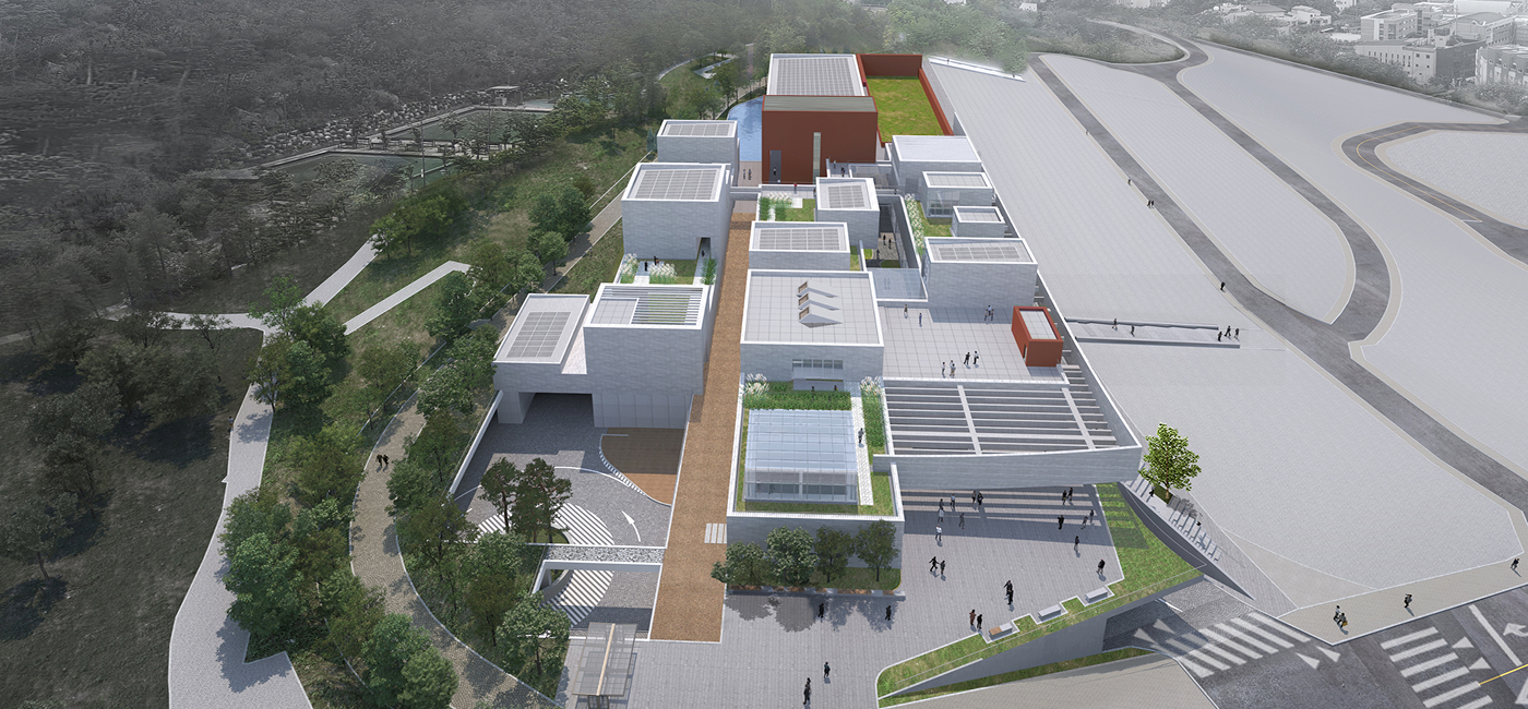 전시실, 수장고, 체험실, 다목적실, 도서관, 카페 등